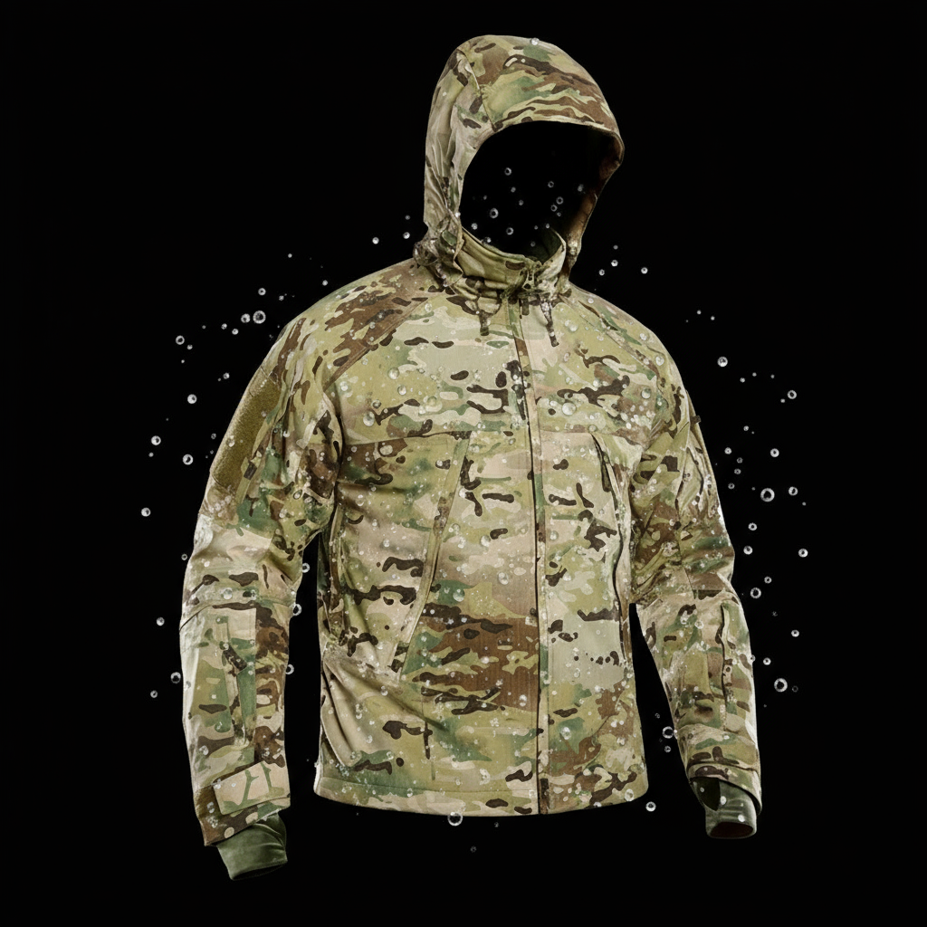 The face fabric of the OT-07 "SKADI" v2 Jacket is a dual-layer ripstop laminate engineered for extreme conditions. It’s fully windproof and highly water-repellent, forming a barrier against icy gusts and driving rain. Despite its rugged protection, the material remains soft to the touch and remarkably quiet in motion — designed for stealth, comfort, and resilience in the field